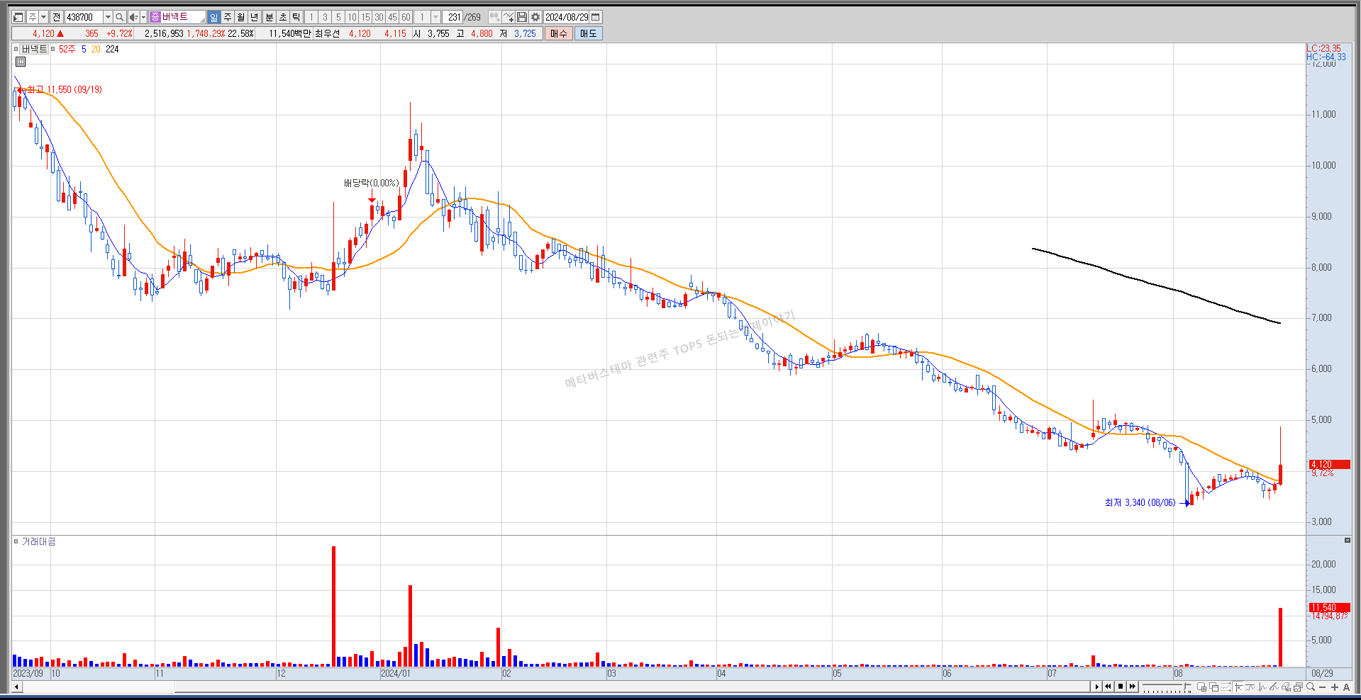 메타버스 테마가 오랜만에 정부차원의 제도 지원가능성으로 거래대금이 유입되며 급등했는데요.
